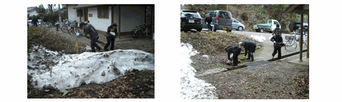 今年は小雪の舞う中、残雪の公園内を加茂事業所の従業員29名が参加し、加茂山の美化に努めました。